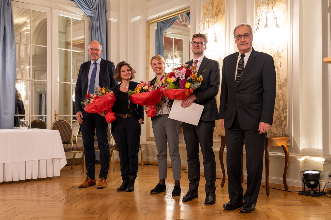 Im Rahmen einer Feier in Bern haben der Vorsteher des Eidgenössischen Departements für Wirtschaft, Bildung und Forschung, Bundesrat Guy Parmelin, und der Präsident der Konferenz der kantonalen Erziehungsdirektorinnen und -direktoren, Staats­rat Christophe Darbellay (Wallis), die Preise an die Forschenden übergeben.